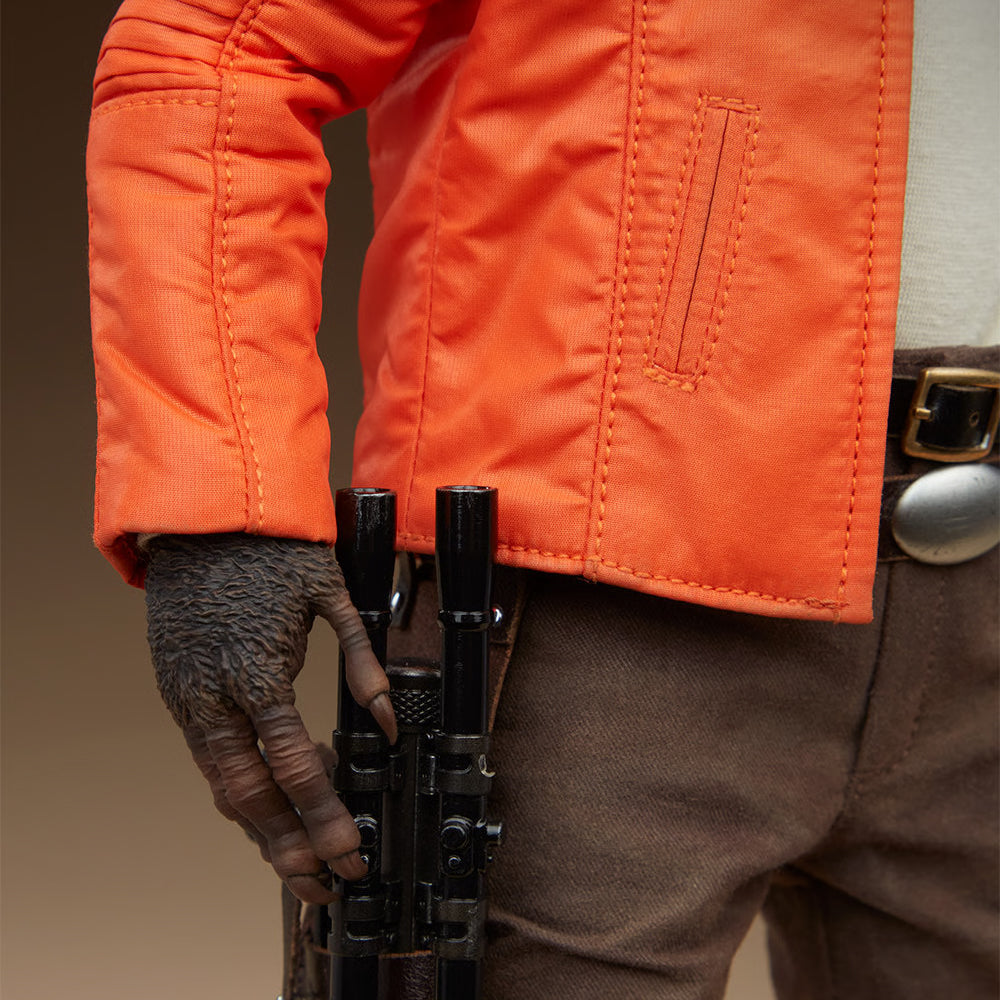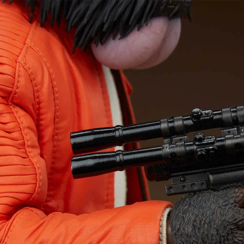 Inspirada en la apariencia del personaje en Una Nueva Esperanza™, esta figura de Star Wars totalmente articulada y altamente articulada viste un traje de tela cosido a mano, que incluye pantalones marrones, botas negras, una camisa gris claro y una chaqueta naranja brillante. La figura de sexta escala de Ponda Baba incluye un bláster, una funda y tres manos intercambiables con los feroces dedos de Ponda.